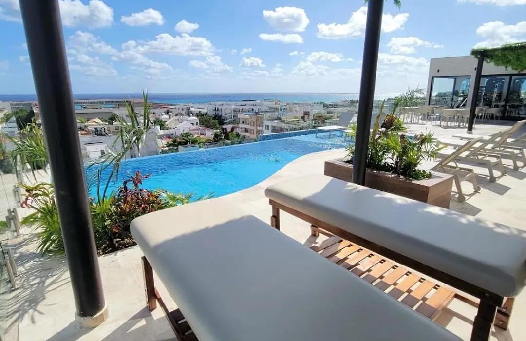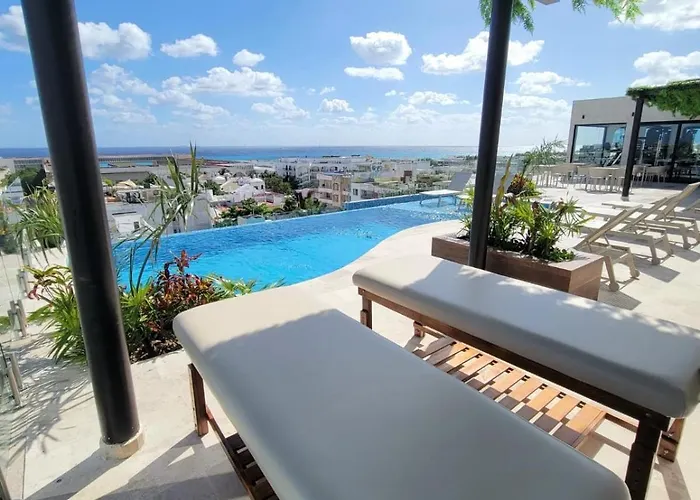 Fabulosa Vista Al Mar Desde La Piscina Infinita Playa del Carmen appartement ligt in het centrum van Playa del Carmen en biedt uitzicht op het zwembad. Kool Beach Club en Skydive Playa liggen op 7 minuten wandelen van en op minder dan 1 km afstand van het appartement van 45 m^2.
